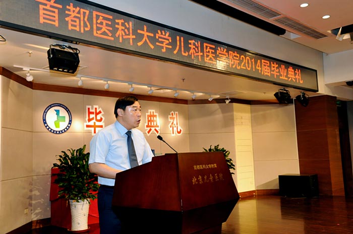 6月27日下午,首都医科大学儿科医学院2014届毕业典礼在门诊楼12层报告厅隆重举行。儿科医学院院长、儿科学系主任、北京儿童医院院长倪鑫教授,儿科医学院副院长、儿科学系副主任张建教授,党委副书记丁枭伟教授出席毕业典礼,教育处处长王爱华同志主持会议,各教研室主任、研究生导师、临床教师代表、部分干部职工、部分学生家长及在读学生近200人参加。