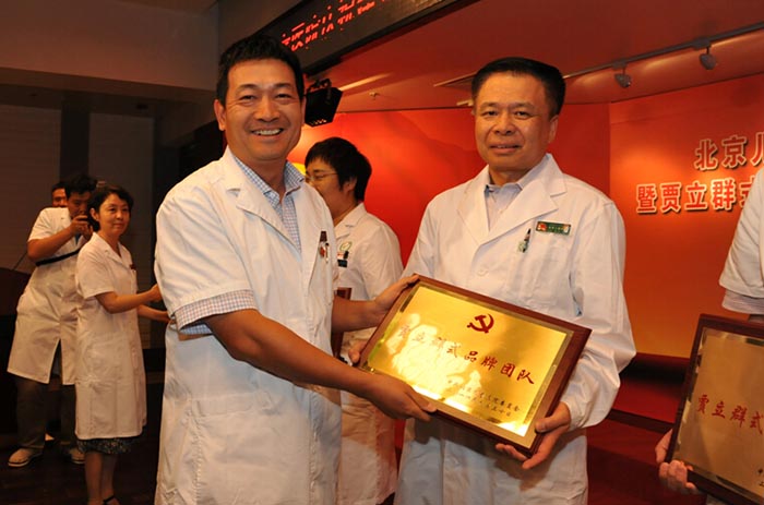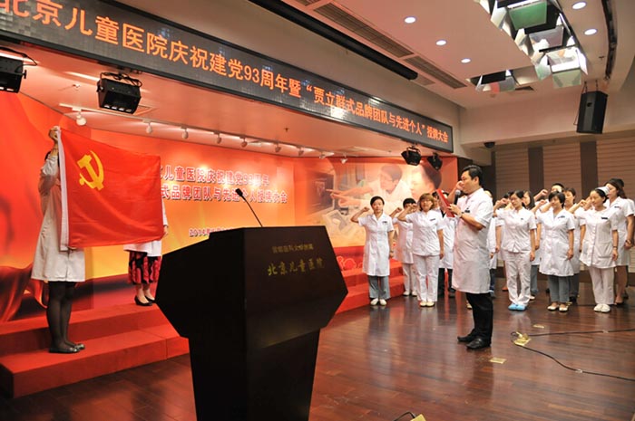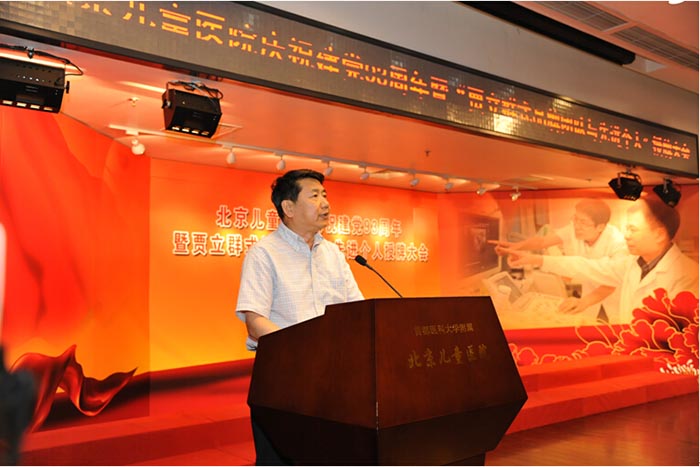 2014年6月30日下午,院党委在十二层报告厅举行庆祝建党93周年暨“贾立群式品牌团队与先进个人”授牌大会,市医管局副局长边宝生出席会议并讲话。院党委副书记、纪委书记丁枭伟主持会议。全体院领导、中层干部、部分党员、民主党派、老干部、入党积极分子200余人参加会议。