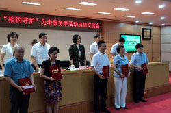 7月2日,北京市医院管理局召开了“相约守护为老服务季活动经验总结交流会”,对5个优秀组织单位、30个优秀工作部门、50名“老有所为之星”、 50名“为老服务之星”进行了表彰。其中我院党委因在活动中的突出表现获得“优秀组织单位”称号;老干部处、团委获得“优秀工作部门”称号;原副院长胡仪吉、原神康主任吴沪生、退休支部宣传委员王金芳,获得“老有所为之星”称号;老干部处副处长吴冬芬、老干部处薛华、统计室团员王旸,获得“青年服务之星”称号。
