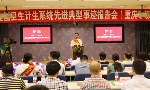 8月8日上午, 在国家卫生计生委的组织安排下,我院贾立群先进事迹报告团在重庆市电信大楼电视电话会议中心作巡回报告,重庆市人民政府副市长刘伟、重庆市委宣传部副部长万相兰接见了报告团成员,重庆市卫生计生委党委委员、副主任何爱华主持会议,重庆市38个区县的4000多名企事业单位人员代表参加了电视电话会议。