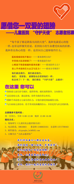“每个孩子都是降落凡间的天使”,我和充满爱心的您一样,也常这样微笑着说。看到幼小的生命遭受疾病的折磨,我和善良热心的您一样,也常问自己能够做些什么。