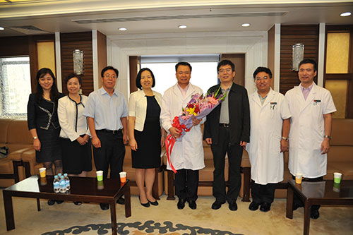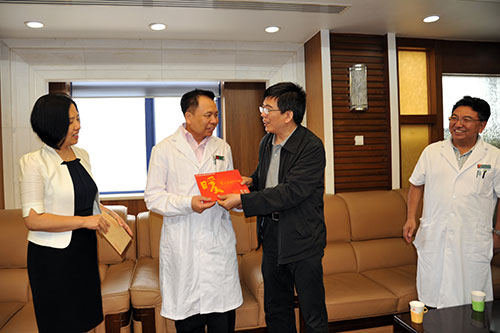 在“十一”国庆节来临之际,9月25日上午,市总工会党组成员、副主席陆晓光,市政法文卫工会主席原在会,北京市医管局党委副书记韦江,北京市卫生计生委工会副主席刘凤婷,北京市医管局工会筹备组负责人赵红在我院王天有书记和丁枭伟副书记的陪同下,向享有“B超神探”美誉的北京市劳模贾立群表达了节日的问候。