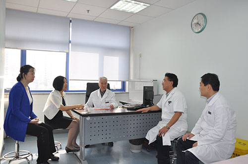 上午9点,韦书记手捧鲜花,来到我院6层特需门诊,看望正在那里出门诊的张金哲院士。在出诊间歇,韦书记与张院士亲切交谈,关切地询问院士的身体和工作情况,向院士介绍了医管局的近期工作,叮嘱院士要保重好身体。张院士感谢医管局领导的关心,并风趣地表示:要好好地活着,还等着到新建的血液肿瘤大楼出门诊呢!