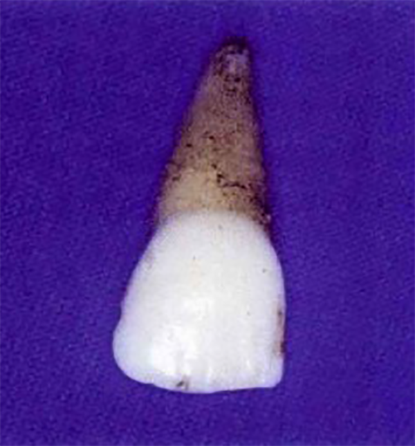 牙齿脱落后,要尽量只触碰图中白色的牙冠部分