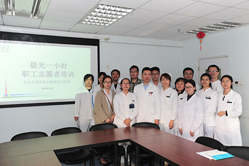 为鼓励职工志愿者积极参与我院志愿服务,志工部特开设“晨光一小时”志愿服务项目,并得到党办、纪检、工会、科研处、综合病房等部门的积极响应,13名职工报名了此项目。丁书记在培训会结束时再次强调职工志愿者需要加强自身能力建设,在服务前务必精读志工部提供的《志愿服务指南》。