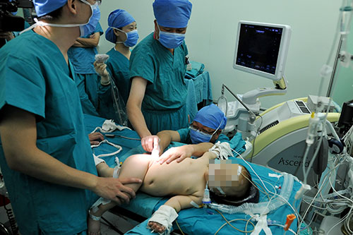 患儿小宣的病情引发了社会各界关注,也牵动了北京儿童医院全体医务人员的心。医院领导高度重视,在病床非常紧张的情况下第一时间安排患儿入院。医务处迅速组织急诊科、基础外科、骨科、泌尿外科、胸外科、影像中心、超声科、麻醉科、ICU等相关科室专家,先后进行了四次细致、缜密的会诊,并制定了详细的手术方案。
