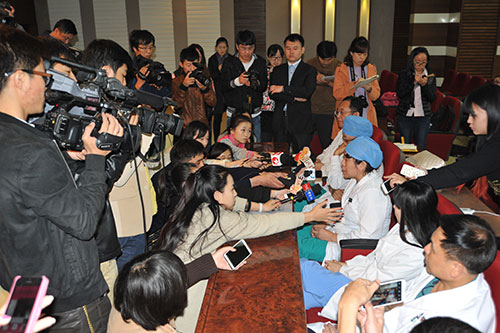 “经我院基础外科、骨科、泌尿外科、麻醉科、影像中心及超声科6个科室包括9名主任医师在内的专家团队的合作手术,患儿体内的12根金属异物全部被取出。”下午3点30分,北京儿童医院院长助理赵成松在术后召开的医院情况通报会上正式发布了手术成功的消息。参与手术的基础外科张廷冲主任医师、骨科张学军主任医师、基础外科陈永卫主任医师、基础外科侯大为主任医师、超声科王晓曼副主任医师、超声科贾立群主任医师、影像中心段晓岷主任医师、麻醉科张建敏主任医师分别介绍了患儿手术及前后的诊疗情况。