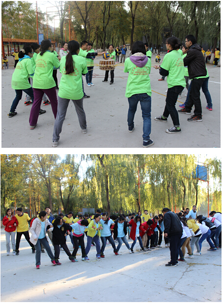 训练还安排有“蛟龙出海”、“共赴前程”、“网中情缘”的团队协作项目。“蛟龙出海”要求每队学院站成一排,相邻两人的两只脚被绑起来,整个队像螃蟹一样横着走。“共赴前程”中,教练为每队发放了有限的报纸资源和透明胶带,要求大家在规定时间内做出一副能容纳全队成员的大型履带,率先到达者为胜。“网中情缘”是在全体队员面前悬挂一张"电网",网上的洞口大小不一,要求队员在规定时间内,从网的一边依次通过到达另一边,每个网孔只能用一次不论是否通过用完即被封住,到达另一边的队员不能够再返回。最后一个项目是“挑战1021”,要求每个小组在10分21秒内完成“动感掂球”、“不倒森林”、“大河之舞”、“能量传输”、“动力火车”、“心手相连”等8项小任务,“唯吾独尊队”充分发挥了团队精神,获得冠军,其他五队也均提前完成了任务。队员们在活动中逐渐增强了团队意识,人际间的关系也从一开始的“陌生人”,变成了一个“群体”。随着大家高涨热情的参与和密切的协作,“群体”又逐渐演变为一个密不可分的“团队”。