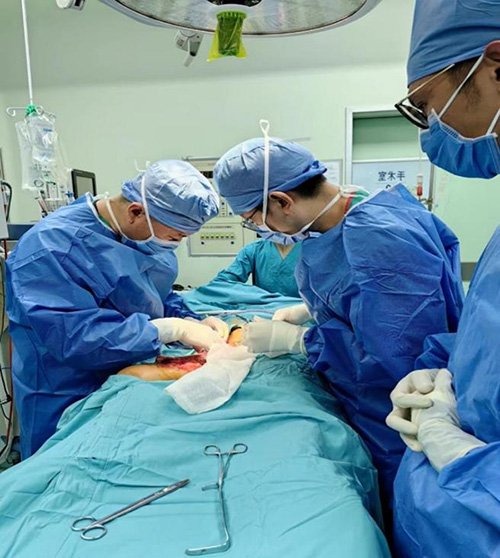 傍晚时分,重症医学科立刻做好术前准备,心脏外科一科副主任医师范凡、骨科陈天医师、烧伤整形外科主任医师王伊宁和医师杜江南、麻醉科主任医师朱晓红和医师陈惠子在接到通知后,也迅速赶到手术室积极配合。晚上18:55,手术正式开始,在北京积水潭医院主任医师贾伟和在场所有医护人员的共同努力下,人工血管被顺利植入小女孩的右下肢,长达4小时的手术顺利完成,孩子安返重症医学科病房。