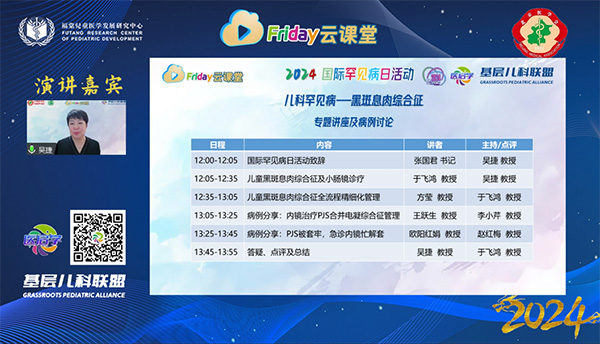 3月1日,北京儿童医院消化科“基层儿科联盟Friday云课堂”迎来了四周年暨第200期主题活动,聚焦“黑斑息肉综合征”。黑斑息肉综合征是国家罕见病目录中的消化系统相关罕见病,该主题活动也将北京儿童医院消化科国际罕见病日系列活动推向了高潮。