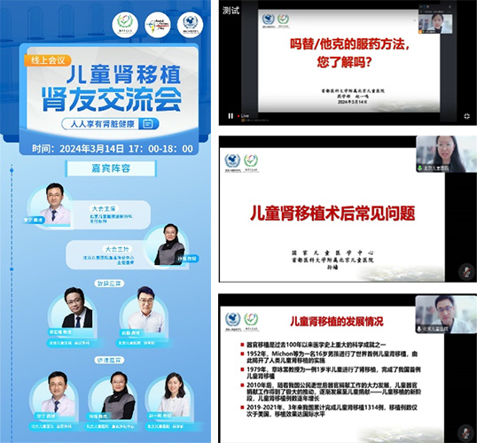 3月14日是第19个世界肾脏日。今年的主题是“人人享有肾脏健康——促进医疗平等,优化用药实践”。当日,北京儿童医院血液净化中心联合泌尿外科、药学部线上召开了“儿童肾移植肾友交流会”,向广大患儿普及肾脏知识,助力医院肾移植工作的开展。来自全国各地的正在透析等待肾移植的小患友和已经肾移植后的随诊患儿及家属共400余人线上参加了交流会。