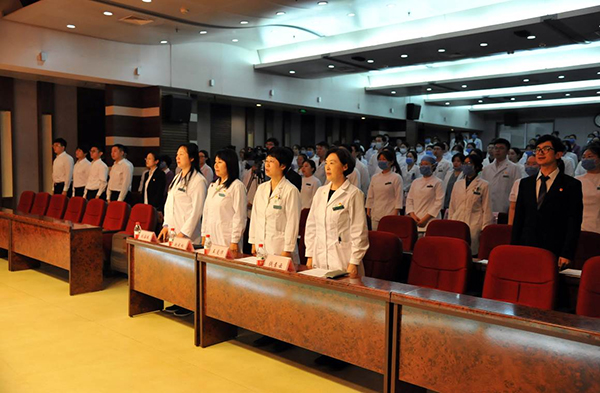 大会在团歌声中闭幕,由工会田大地、心脏外科杨琳琳、服务公司樊赛、纪检办公室高云等4名青年领唱。