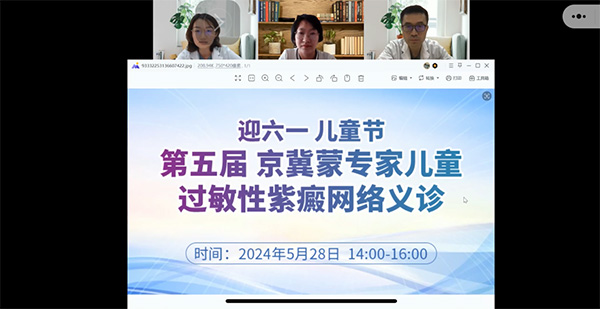5月28日,由北京中西医结合学会儿科专业委员会、北京中医药学会儿科专业委员会主办,北京儿童医院中医药学团支部承办,北京儿童医院保定医院、呼和浩特市妇幼保健院协办的第五届“京冀蒙专家儿童过敏性紫癜网络义诊”活动成功举办。活动旨在通过线上宣教,传播中西医协同诊疗过敏性紫癜的理念,科普过敏性紫癜相关知识,解答家长热点问题,中西协同,医患携手,共同促进患儿康复。本次线上义诊共有近1000人次参加。义诊由北京中医医院西峥副主任医师、北京儿童医院中医药学团支部纪检委员冯锴共同主持。