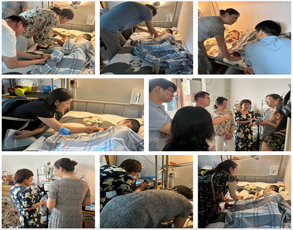 熊晖教授介绍了小凡的病情进展和LAMA2相关肌营养不良的诊治现状,一如既往的鼓励小凡积极乐观、追求梦想;许志飞教授现场为小凡进行血氧饱和度监测,调整呼吸机参数,并全面评估使用无创呼吸机辅助呼吸;郭东主任医师、李海天主任医师和付晓虎医师共同讨论康复方案,建议通过辅具调整摆位,提升生活质量,同时配合按揉等手法训练,促进关节功能康复;潘长鹭副主任技师建议尝试经口全营养配方奶粉或胃造瘘手术,改善长期营养缺乏。神经内科病房护士长甄玉荣、任爱丽也远程为小凡的日常护理注意事项提供建议。神经内科葛琳医师从博士研究生开始就致力于LAMA2肌营养不良的诊治,一直负责患者的随访,这次承担了义诊的组织协调工作。
