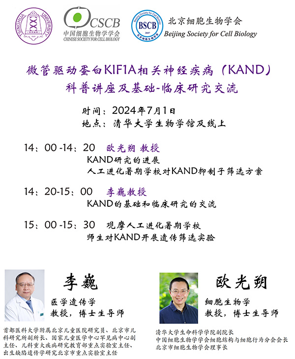 7月1日,清华大学生命科学学院举办了人工进化暑期学校的KAND(KIF1A-Associated Neurological Disorder)医患进课堂活动,邀请到首都医科大学附属北京儿童医院医学遗传学专家李巍教授进行科普讲座和现场答疑,十位患者及其家属、清华大学生命学院本科生、协和八年制预科班同学参加了活动。该项活动也是北京儿童医院中国细胞生物学会科普基地的活动之一,基地秘书陈元颖博士一同前往参加。
