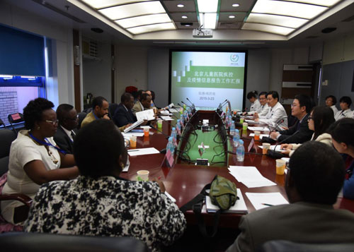 谢向辉副院长首先致辞,欢迎远道而来的非洲联盟委员及卫生同行访问北京儿童医院,并对国家、市、区疾病预防控制中心重视我院疾控工作表示感谢。北京儿童医院始建于1942年,至今已发展成有70多年历史的国内最大的儿童专科医院,每年服务百万儿童。我院的院旗与非洲联盟的旗帜都是绿色的,绿色象征和平与友谊、希望与发展,希望此次的交流双方取得很大收获,增进双方的友谊,促进疾控及卫生事业的稳步发展。