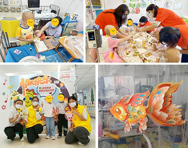 在这个金色的季节,月光如银盘般皎洁,中秋佳节,北京儿童医院社会工作部携手北京德医健康管理促进中心、儿童舒缓活动中心以及新阳光病房学校来到干细胞移植科、血液病科、肿瘤内科以及白血病科等多个临床科室病房,开展“童趣工坊”——中秋主题系列活动,活动中,患儿与家长体验手工制作的乐趣,欣赏艺术表演的魅力,感受节日的温暖。