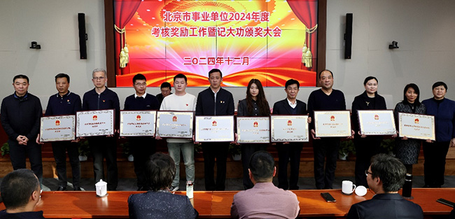 为更好地激发事业单位工作人员干事创业的积极性、主动性、创造性,营造学习先进、争当先进的浓厚氛围,12月18日,北京市人力资源和社会保障局隆重召开2024年度事业单位工作人员年度考核奖励工作暨记大功颁奖大会。会议宣读了《关于2023年度事业单位工作人员和集体记大功奖励的决定》,对18个集体、26名个人给予“记大功”奖励,并颁发奖牌、证书。国家儿童医学中心、首都医科大学附属北京儿童医院荣获集体“记大功”奖励,也是唯一一家医疗卫生领域集体获此殊荣。副院长赵成松代表医院接受授牌,并作为集体记大功奖励代表单位发表感言。