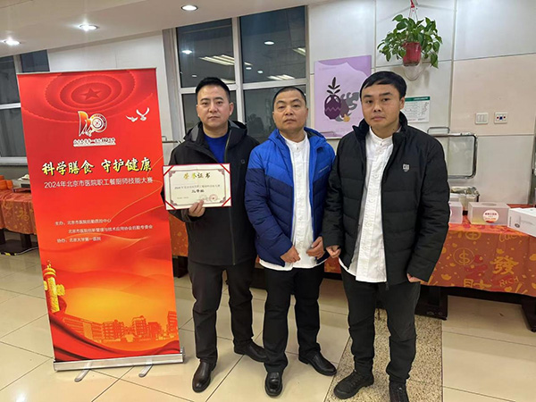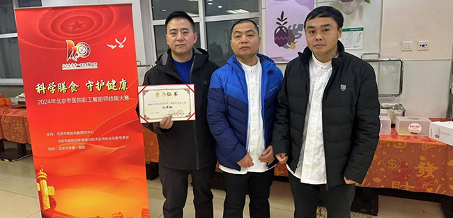 北京儿童医院作为本次参赛单位之一,派出由职工食堂行政总厨杨学东为领队,大灶厨师长闫红旗为主厨,小炒灶副厨师长李敬立为副厨组成的三人参赛队伍参加比赛。大赛中,厨师代表用他们丰富的经验、默契的配合、精湛的厨技征服了现场大众评审的味蕾,在激烈的竞争中脱颖而出,最终获得三等奖的好成绩。