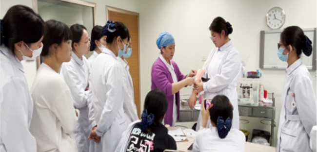 培训与考核不是仅局限于流程和技能的掌握,而是基于临床真实情境,根据患者基本信息和病情介绍,学生间互为标准化病人和家长,交流评估后结合患者实际情况进行操作。所有培训项目学生均需作为病人和护士两个角色亲身参与和体验,进行操作。通过两周的实训,学生不但巩固了基本操作流程,也进一步提升了知识应用能力、应变能力和沟通能力,突破了第一次实操的心理恐惧感。