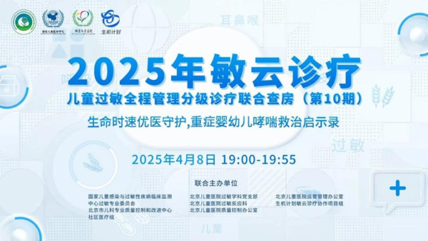 2025年4月8日,第10期敏云诊疗联合查房活动顺利举行。本次讨论主题为“生命时速优医守护 重症婴幼儿哮喘救治启示录”。会议邀请了来自北京儿童医院过敏反应科和质量控制办公室、首都医科大学附属首都儿童医学中心重症医学科、北京市垂杨柳医院儿科和大兴区中西医结合医院的多位专家,针对一例婴幼儿哮喘重度急性发作患儿的协同抢救过程进行点评,分析哮喘发作的诱因、探讨危重症的识别、救治及婴幼儿哮喘规范化治疗的难点,进一步落实双向转诊,不断提升儿童哮喘诊疗的能力。