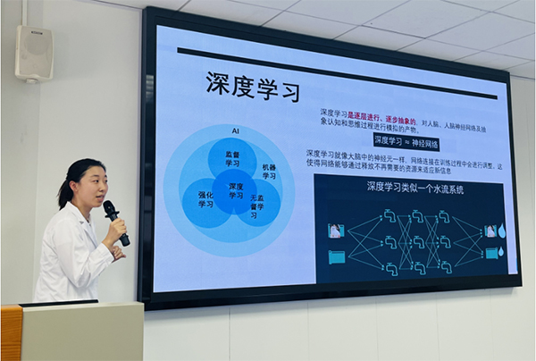 科创中心AI研发专员孙宏宇首先以《大语言模型的前世今生》为题,系统梳理了人工智能从早期算法到现代大语言模型的六十余年发展历程,并结合医疗行业特点,深入浅出地讲解了大语言模型的核心元素、程序逻辑和应用场景。此外,她还分享了DeepSeek等常见AI工具的使用技巧,助力职工提升工作效率。