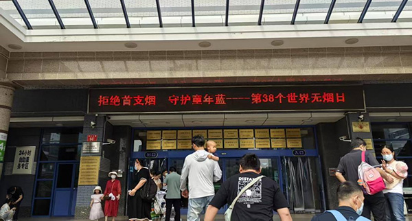为深入普及烟草危害知识,倡导健康生活方式,助力健康中国建设,北京儿童医院积极响应号召,于5月30日上午在医院门诊楼前组织开展了“拒绝首支烟,守护童年蓝”为主题的第38个世界无烟日控烟宣传活动。