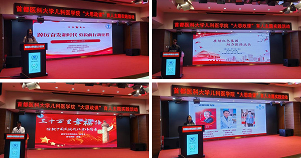 本次实践活动紧扣“育人”主题,涵盖了“讲好党的大政方针政策”“讲好青年时代思考”“传承红色精神”等多个主题,邀请到首都医科大学附属北京儿童医院老师及首都医科大学宣讲团成员,讲述他们对党的深刻认识、理性思考与炽热情怀,并分享了勇担使命的青春故事。