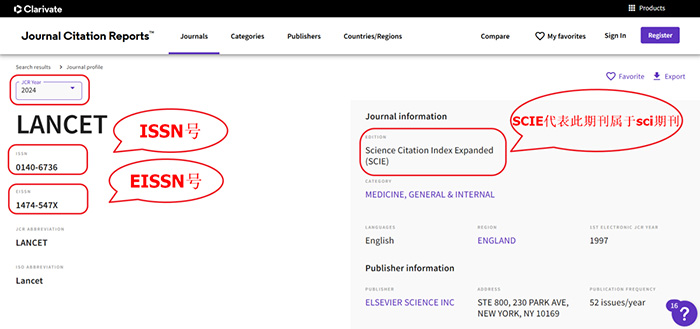 【EISSN号】是电子期刊的ISSN号。期刊出版物如果出版印刷版和电子版,就会同时具有ISSN号和EISSN号,一个是印刷版的ISSN,一个是电子版的EISSN。两个号都是全球唯一的。ISSN和EISSN可以在院内通过JCR官网(jcr.clarivate.com)进行查询。注:个别期刊无ISSN号,仅有EISSN号。