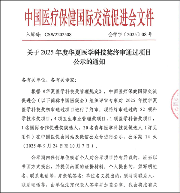 黄金狮团队荣获2025年度华夏医学科技奖三等奖
