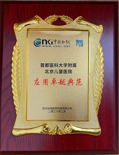 北京儿童医院荣获中国知网“应用卓越典范”奖