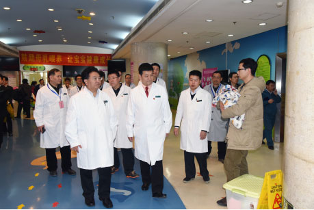 按照北京市卫生计生委和市医院管理局关于做好2016年春节期间有关工作的通知内容,贯彻执行医院党政“一把手”落实春节期间各项安全工作的要求,2月6日,北京儿童医院院长倪鑫、党委书记王天有、党委副书记丁枭伟、副院长曾骐、工会主席王爱华等医院领导带领保卫处、运营保障处、医务处和护理部等部门负责人开展春节前夕全院安全大检查工作。