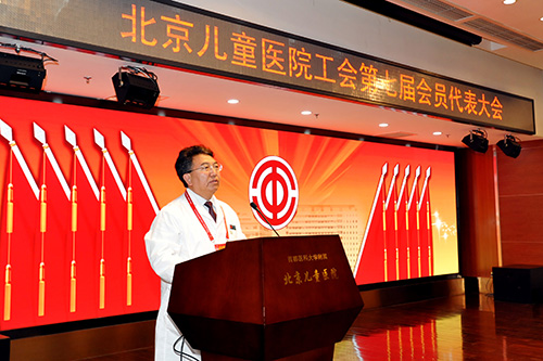 2016年3月31日,经过近半年的筹备,北京儿童医院工会第七届会员代表大会胜利召开。北京市医管局工会副主席赵红莅临大会。北京儿童医院党委书记王天有、副书记丁枭伟及副院长穆毅、谢向辉、曾骐出席大会,北京儿童医院原党委书记沈颖、团委书记胡波及第六届工会委员代表张小宁、杨军华、孙崇显、姜苏敏等列席会议。会议由工会主席王爱华主持。