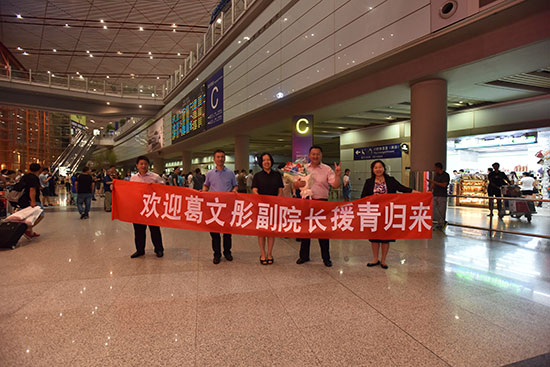 2016年7月30日凌晨0点10分左右,北京儿童医院援青干部葛文彤副院长在完成青海省玉树藏族自治州的三年援助任务后顺利返京。市卫生计生委组织人事处副处长胡兰前去青海迎接,并同机抵京。市医管局党委副书记、工会主席韦江,市医管局组织与人力资源管理处调研员李方亮,北京儿童医院党委副书记、纪委书记丁枭伟,党办主任陈萍等人员到机场迎接。
