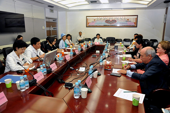 2016年9月14日下午,秘鲁第一夫人Sra. Nancy Lange Kuczynski代表团在外交部、北京市卫生计生委相关领导的陪同下到访北京儿童医院。倪鑫院长率相关科室主任热情接待并与代表团就未来合作前景展开讨论。座谈会后,第一夫人一行参观了北京儿童医院肿瘤外科病房并亲切地向患儿赠送礼物。