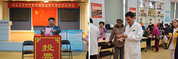 11月15日是人大代表换届选举日。北京市西城区复北选区第十六届人民代表大会代表换届选举工作在北京儿童医院电教楼的“职工之家”如期举行,社区5000多位选民参加了投票选举,行使了公民民主权利。医院全体选民参加了投票选举。
