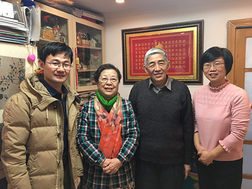 血液肿瘤中心郑胡镛主任、吴润晖副主任、马晓莉副主任及朱光华分会主席一行来到李学勤老人家中,将汇集了全科同仁亲笔签名的贺卡交给老专家,祝福老专家新春快乐,身体健康!