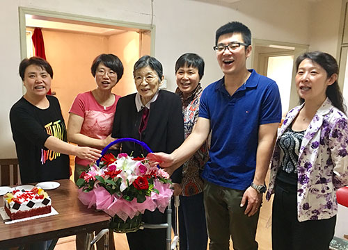 2017年5月8日上午,北京儿童医院工会主席王爱华、老干部处处长吴冬芬及内科书记郭琰等一行到江载芳教授家进行探望,并祝她89岁生日快乐。