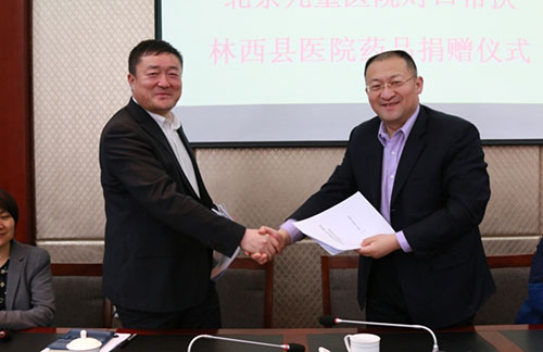 调研会后,葛文彤副院长分别与两家对口支援医院签订了“对口支援工作协议”和“远程医疗合作协议”,并分别向两家医院捐赠儿科常用药品,总计价值5万余元。