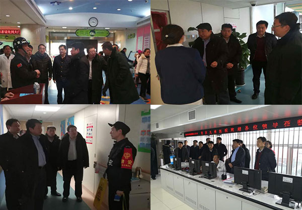 边宝生副局长首先带领检查组对急诊及EICU留观病房的防恐防暴工作进行了检查,当场询问了执勤保安关于突发事件的处置流程。在消防治安监控中心,边局长及检查组对刚刚落成投入使用的安防系统进行了查看,边宝生副局长指出要发挥好人防与技防的协作功能,预防安全生产事故发生,增强突发事件应急响应处置能力。