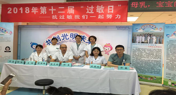 在第十二个世界过敏日来临之际,2018年7月9日上午,北京儿童医院皮肤科与过敏反应科在门诊楼八层共同举办了“抗过敏我们一起努力”的主题宣传义诊活动。