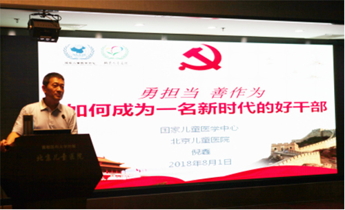 2018年8月1日中午十二点半,五官一、二支部,儿研所支部和机关一支部的联合党日活动在十二层大会议室顺利举行。根据院党委整体工作的部署,倪鑫院长作为四个支部工作的联系领导,受邀为逾百名支部党员、入党积极分子讲授了一节激情澎湃的党课。