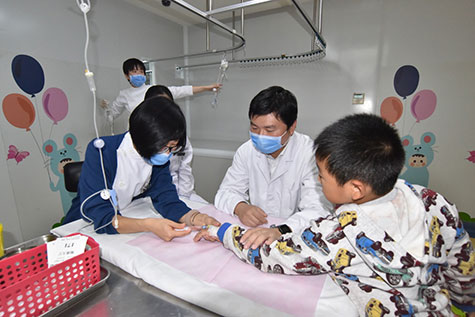 10月30日,中组部 樊帅(中间)在输液中心体验工作