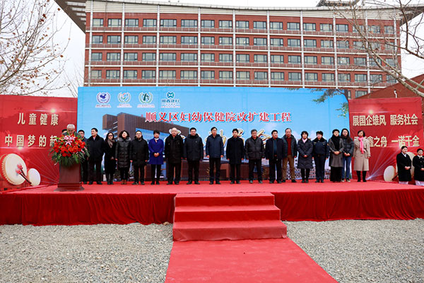 12月5日,北京儿童医院顺义妇儿医院改扩建工程开工启动仪式在顺义妇儿医院举行,工程设定床位500张。北京市卫生健康委员会副巡视员郑晋普、顺义区委常委、副区长支现伟、北京儿童医院顺义妇儿医院总院长倪鑫、顺义区卫生和计划生育委员会主任董杰昌,以及顺义区相关委办局领导,顺鑫天宇公司总经理王亚维等领导班子成员出席。顺义妇儿医院党委书记张树海主持仪式。