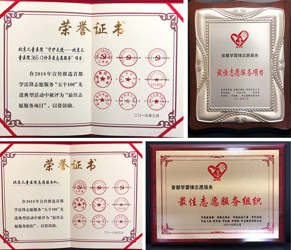 北京儿童医院志愿服务工作取得了较好的成绩,在本次“五个100”学雷锋先进典型活动的评选中,北京儿童医院志愿服务队获评为“最佳志愿服务组织”,北京儿童医院“守护天使——北京儿童医院365门诊导医志愿服务”项目获评为“最佳志愿服务项目”。在今后的工作中,北京儿童医院志愿服务工作将再接再厉,在提升患者就医体验、提高医院诊疗效率、促进儿童健康科普理念传播方面做出更加积极的贡献。