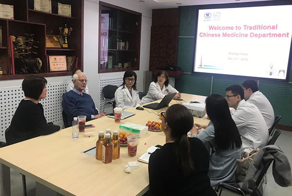 中医科胡艳主任介绍了中医科的发展历史,以及在病毒性肺炎、婴儿胆汁淤积性肝病、胃肠功能紊乱、儿童风湿病等优势病种的中西医结合治疗经验,并介绍了中医科开展“中西医多学科合作”项目的进展。David Steinhorn介绍了自己的从医经历,以及对中医药的认同。Michelle McGuire女士详细询问了在综合医院,中医科与西医科室合作的模式机制,对中医科的中医特色、专科优势表示肯定,希望加强与中医科在医疗技术、科学研究、文化等方面的合作。在座谈中,双方在中医药干预治疗时机、疗效、社会效益等方面进行了热烈的探讨。