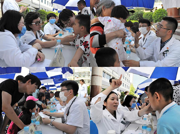 5月31日下午1点, 似火的骄阳抵挡不住专家们义诊的真诚和热情,在北京儿童医院门诊楼前,来自医院感染内科、内分泌遗传代谢科、呼吸科、消化科、风湿免疫科、中医科、神经内科、心脏内科、普通外科、骨科、泌尿外科、耳鼻咽喉头颈外科、眼科、口腔科、皮肤科、临床营养科、药学部、输血科、护理部、疾控处等科室的20余名专家为500余名患儿及家长提供免费咨询及就医指导;发放无偿献血、母乳喂养、辅食添加、用药安全、传染病防控等宣传册,孩子们也收到了来自医务人员的画册和祝福。这也是医院连续第八年在儿童节开展义诊活动。