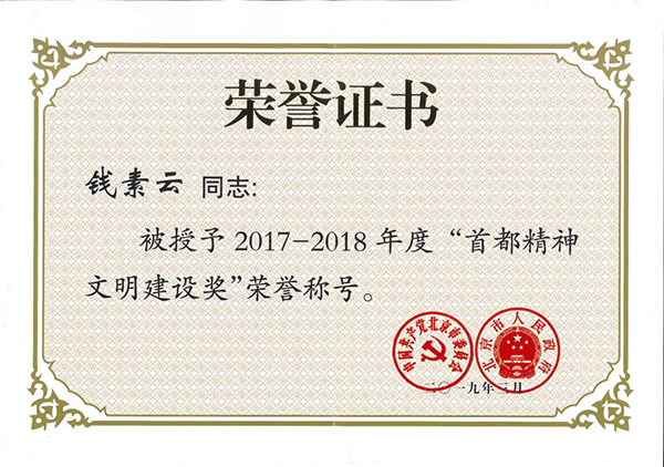 重症医学科钱素云主任荣获“首都精神文明建设奖”