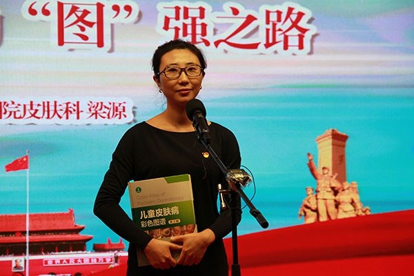 梁源以《马琳主任的“图”强之路》为题,讲述了皮肤科马琳主任心系患儿、不畏艰难,带领皮肤科团队历经20余年拍摄、收集、整理皮肤病患儿照片资料,编辑出版了中国第一部《儿童皮肤病彩色图谱》、造福无数皮肤病患儿的故事,从一个侧面反映了北京儿童医院皮肤科伴随着医院不断发展壮大的成长历程。