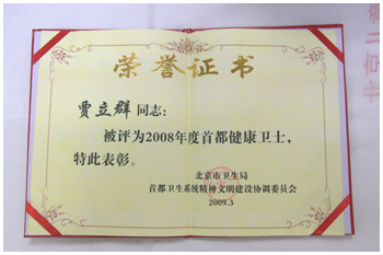 10、2009.03 被北京市卫生局、首都文明办评为“2008年度首都健康卫士”。